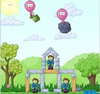 - Чтобы сбросить камень на одного из зомби, просто кликните по выбранному воздушному шарику.
