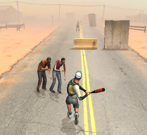 Во время бега не забывайте, что нашему герою нельзя останавливаться ни на секунду и он просто обязан избегать столкновений с горящими машинами, бетонными блоками и прочими препятствиями. Также ему следует избегать контакта с инфицированными – просто уклоняйтесь от встречи с зомби или уничтожайте их бейсбольной битой.